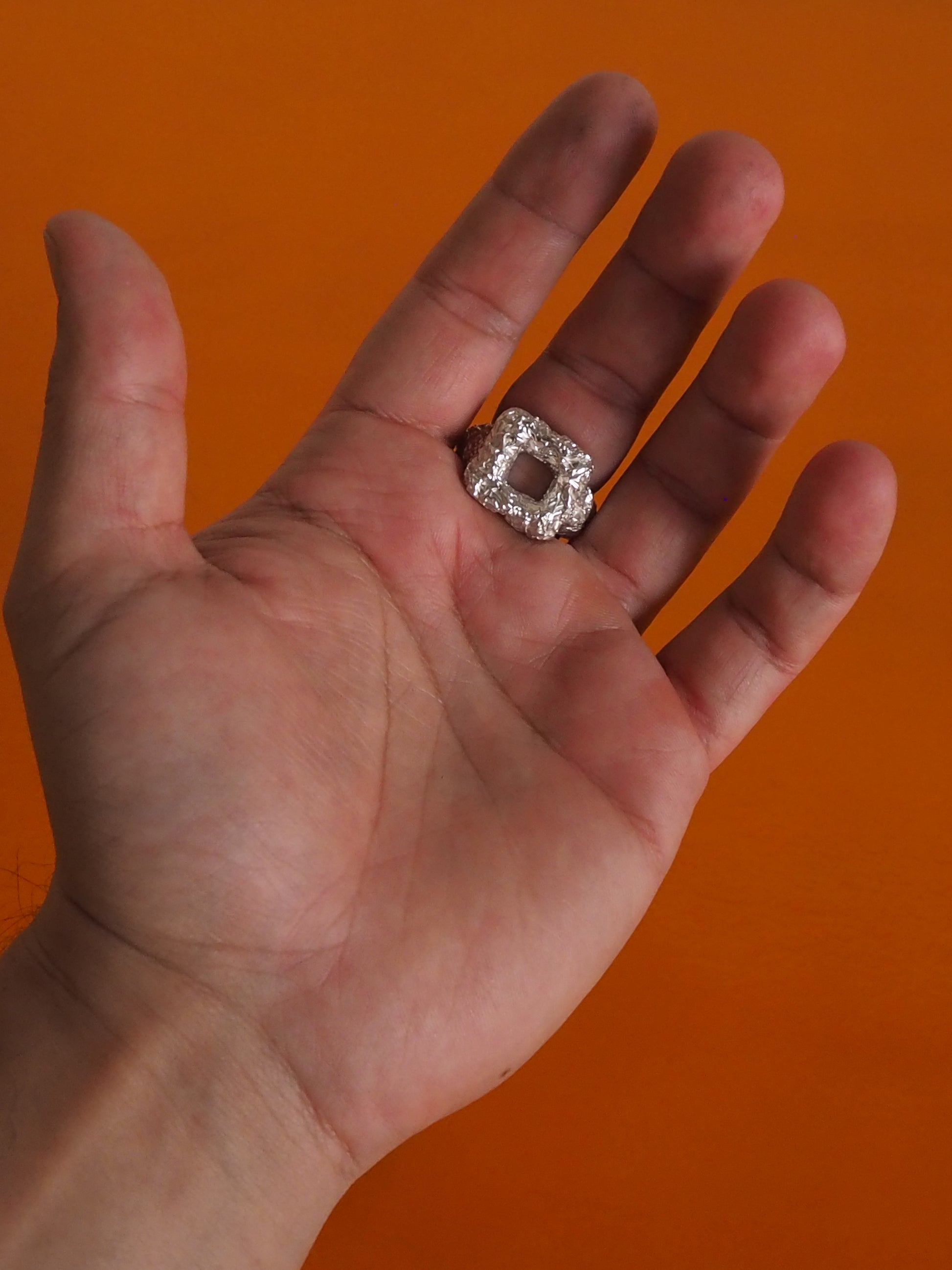 Your piece is made in sterling silver 925, with a folded structure inspired by fragile tinfoil.